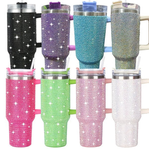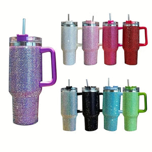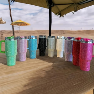 1 pièce, gobelet à clous étincelant avec couvercle, bouteille d'eau thermique en acier inoxydable de 40 oz avec poignée, gobelets portables, pour voiture,