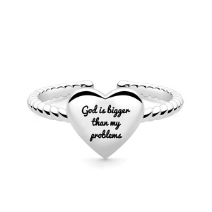 Bague en acier inoxydable avec le cœur « Dieu est plus grand »
