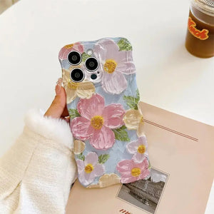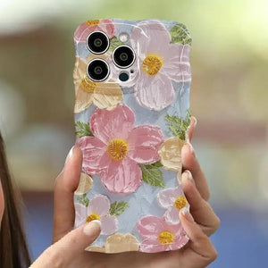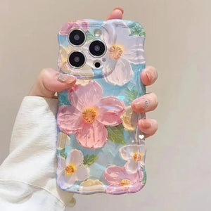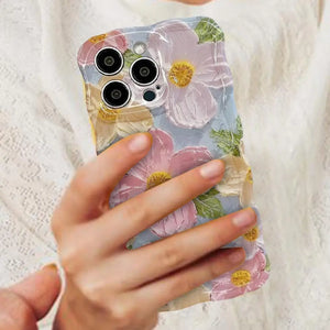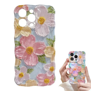 Coque de protection en TPU colorée pour iPhone 15/15 PRO/15 PRO MAX avec motif de fleurs et peinture à l'huile rétro